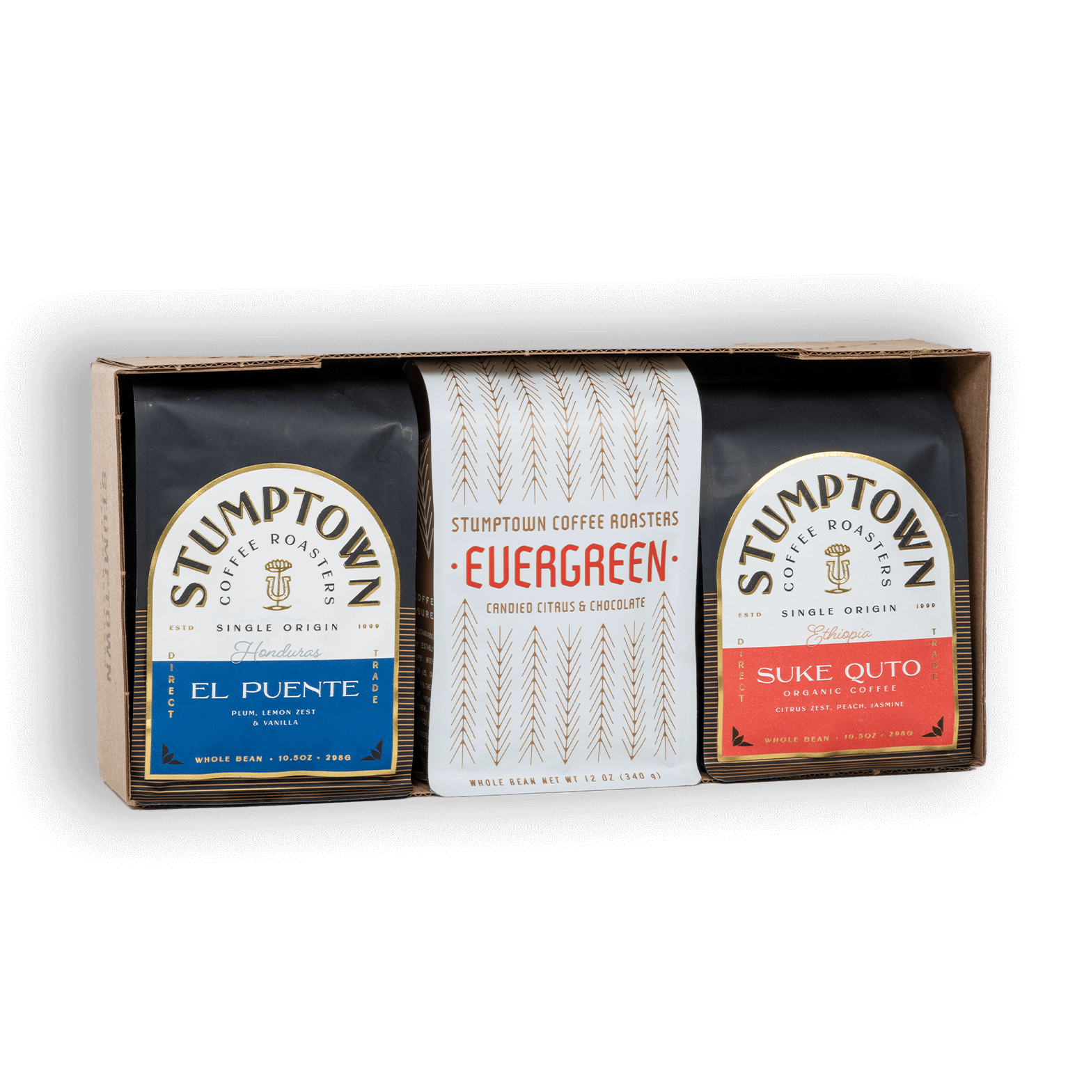 This trio’s got three French hens beat by a longshot with one 12 oz bag of Evergreen Blend, and 10.5oz bag of El Puente and Suke Quto.